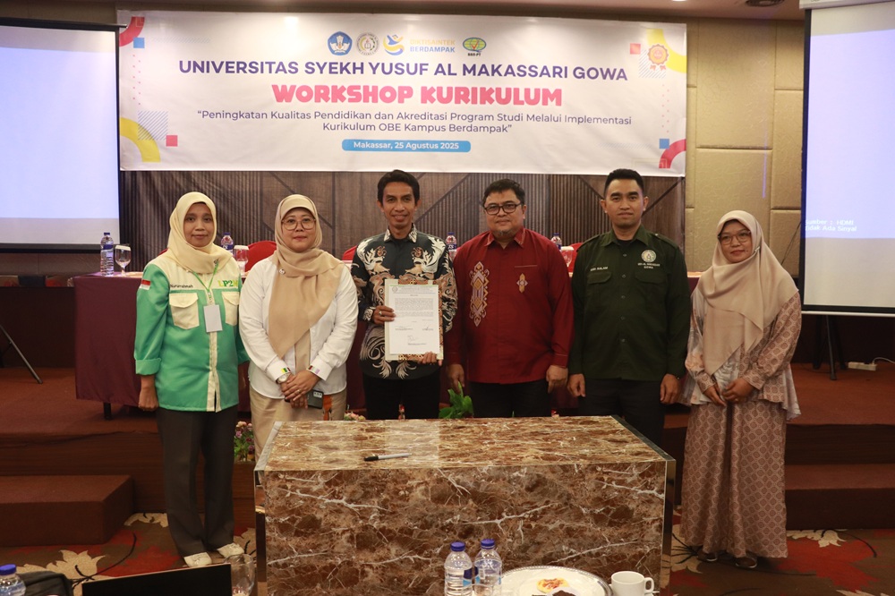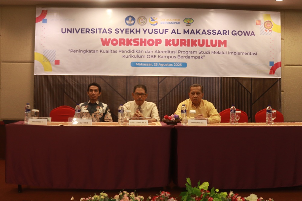 niversitas Syekh Yusuf Al Makassari Gowa kembali menunjukkan komitmennya dalam meningkatkan mutu pendidikan tinggi dengan menyelenggarakan Workshop Kurikulum Program Studi pada Senin (25/08/2025) di Hotel Remcy Makassar. Kegiatan ini mengusung tema “Peningkatan Kualitas Pendidikan dan Akreditasi Program Studi Melalui Implementasi Kurikulum OBE (Outcome Based Education) Kampus Berdampak”.